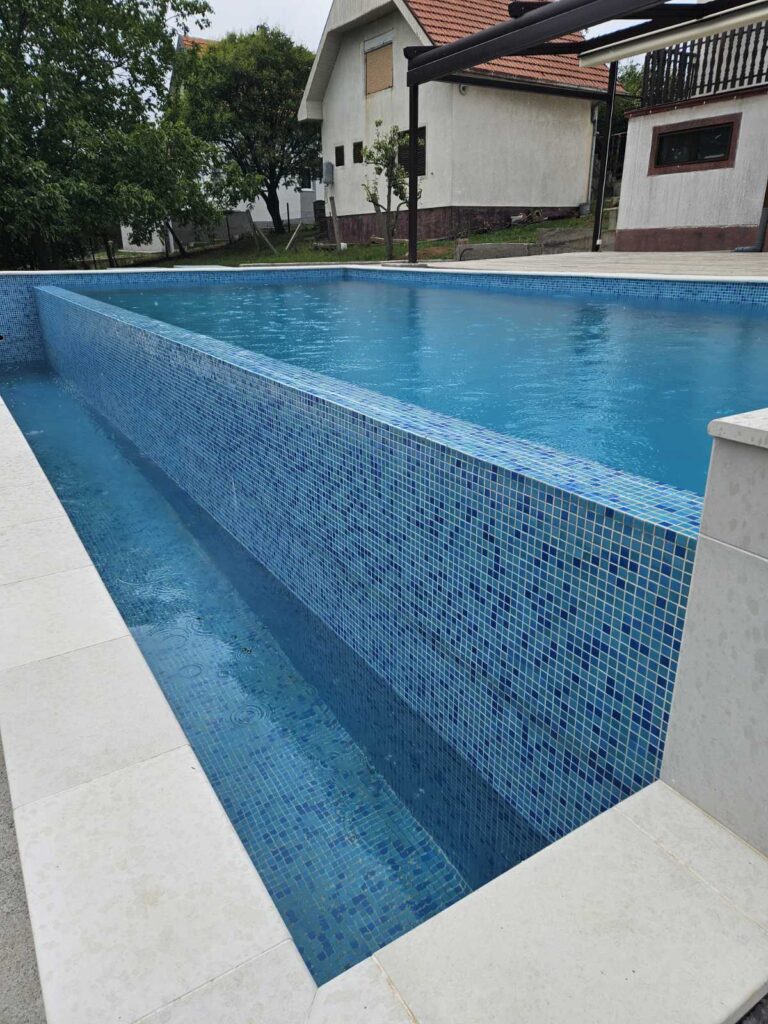 Bazen ovog tipa stvara utisak vodenog ogledala i sve cešći je izbor ljudi koji žele da upotpune svoj eksterijer ovim tipom bazena.