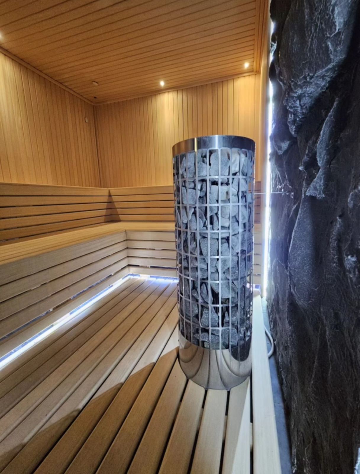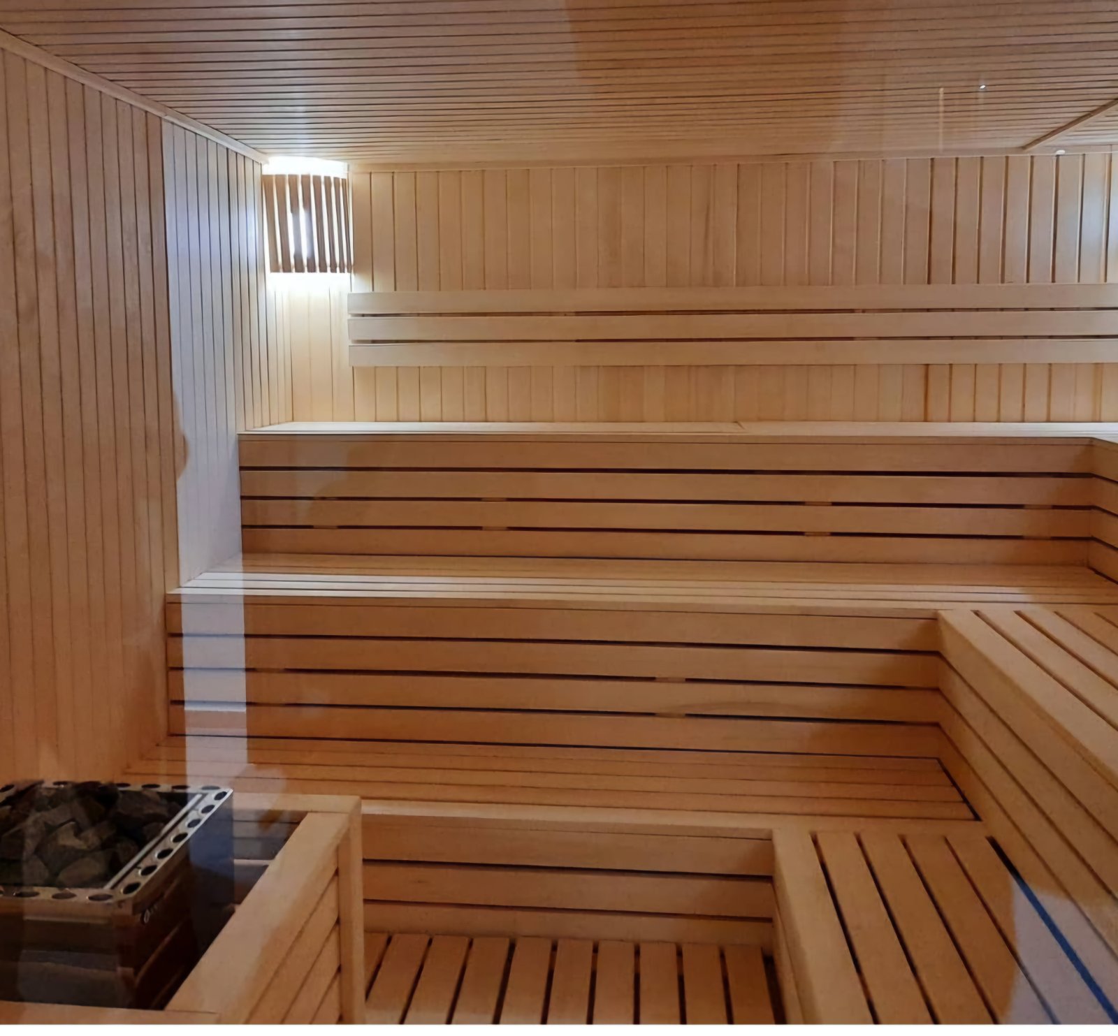 Sauna stvara intenzivnu, suvu toplotu koja snažno podstiče opuštanje tela i uma. Visoka temperatura proširuje krvne sudove, ubrzava cirkulaciju i pojačava znojenje, čime se telo prirodno detoksikuje i oslobađa nagomilanog stresa. Toplota deluje blagotvorno na mišiće i zglobove, smanjuje napetost i ukočenost, a redovna upotreba poboljšava kvalitet sna i jača imunitet.